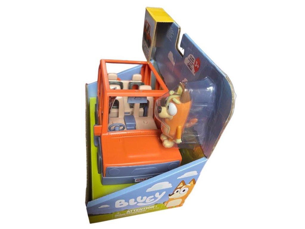 Vydejte se na dobrodružnou cestu s oblíbenou psí rodinkou z animovaného seriálu Bluey! Tento parádní oranžový terénní vůz 4×4 je inspirovaný rodinným autem Heelerových a je ideální pro hraní scén z oblíbených epizod i vymýšlení vlastních příběhů.