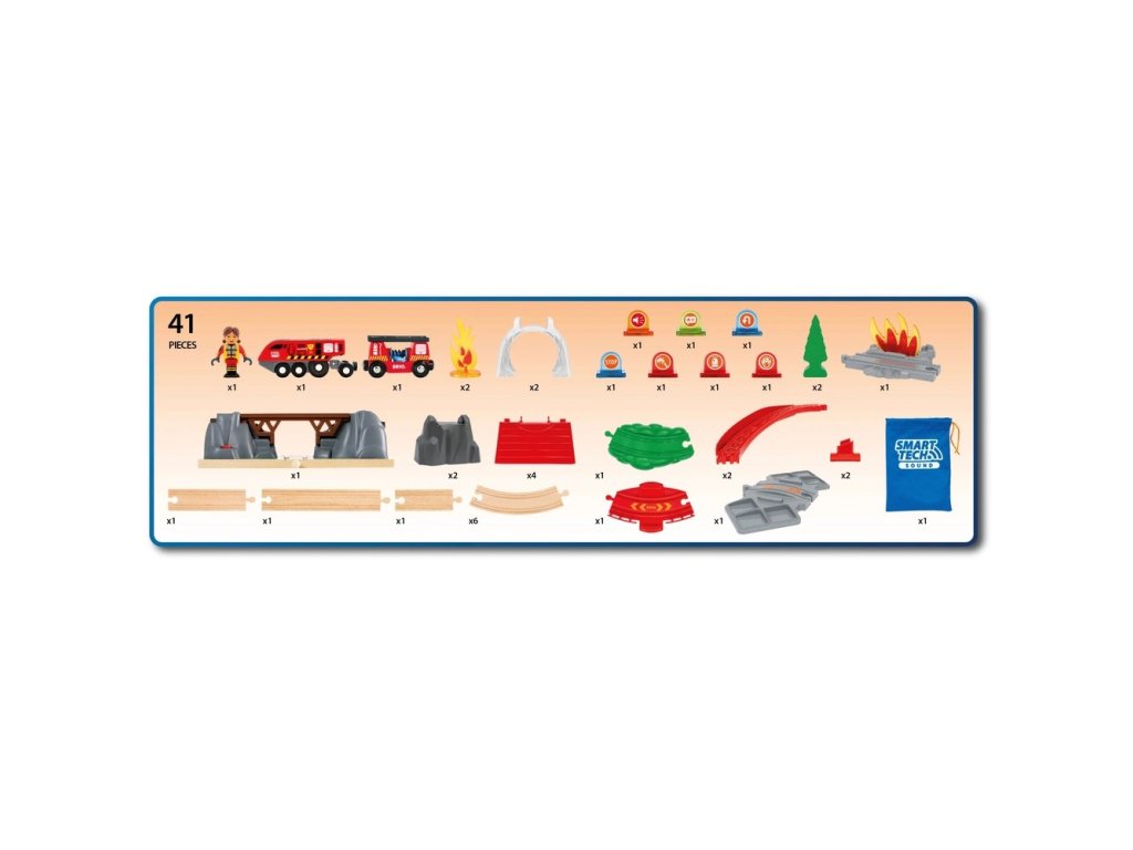 S interaktivní hasičskou sadou BRIO World Smart Tech Sound Feuerwehreinsatz mohou děti prožít napínavé záchranné akce na železnici. Inteligentní Smart Tech Sound lokomotiva s bateriovým pohonem okamžitě reaguje na nebezpečí a pomocí akčních symbolů a speciálních tunelů se aktivují různé funkce – od automatického zastavení a změny směru až po realistické požární efekty.