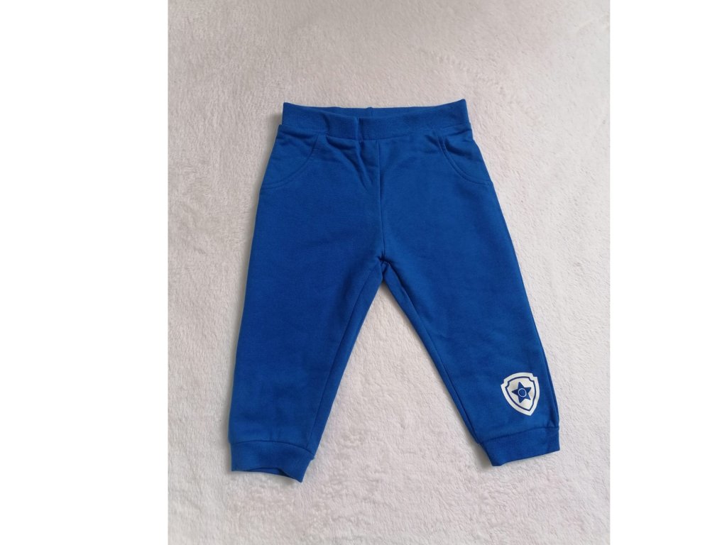 - Modré tepláky s elastickým pasem a manžetami na nohavicích – perfektně sedí, nepadají, volný střih pro volný pohyb při běhání, skákání a záchranných misích