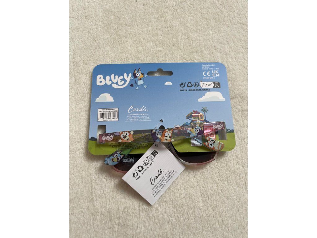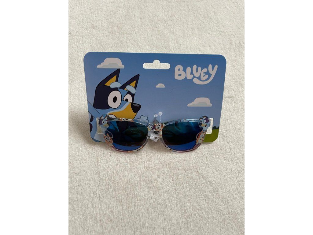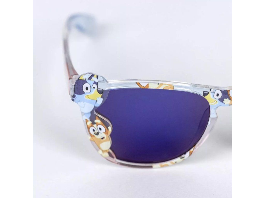 Stylové dětské sluneční brýle s motivem oblíbeného seriálu Bluey jsou skvělým doplňkem na slunečné dny. Brýle mají modrá skla a průhledný plastový rám zdobený veselými obrázky postaviček z pohádky, díky čemuž si je děti rychle oblíbí.