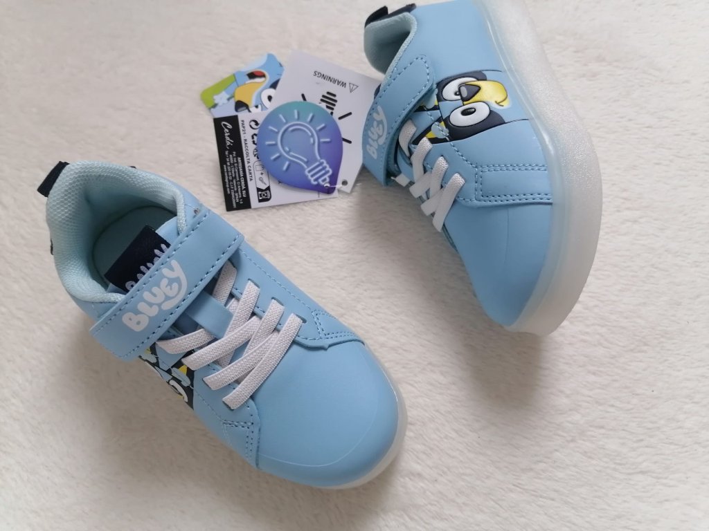 Roztomilé dětské svítící boty s motivem Bluey jsou ideální volbou pro malé fanoušky tohoto oblíbeného animovaného seriálu. Boty mají svítící podrážku, která se rozsvítí při každém kroku a přináší dětem radost z chůze i hry. Díky pohodlnému střihu jsou vhodné na každodenní nošení.