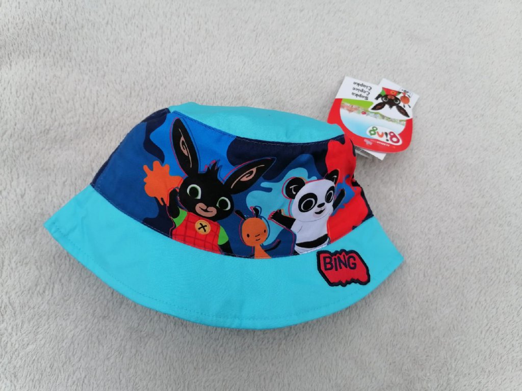 Roztomilý dětský klobouk s motivem králíčka Binga potěší každého malého fanouška této oblíbené pohádky. Skvělý společník na slunečné dny!
