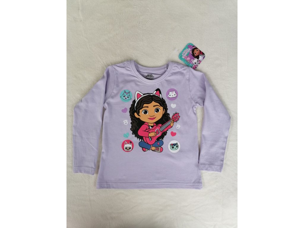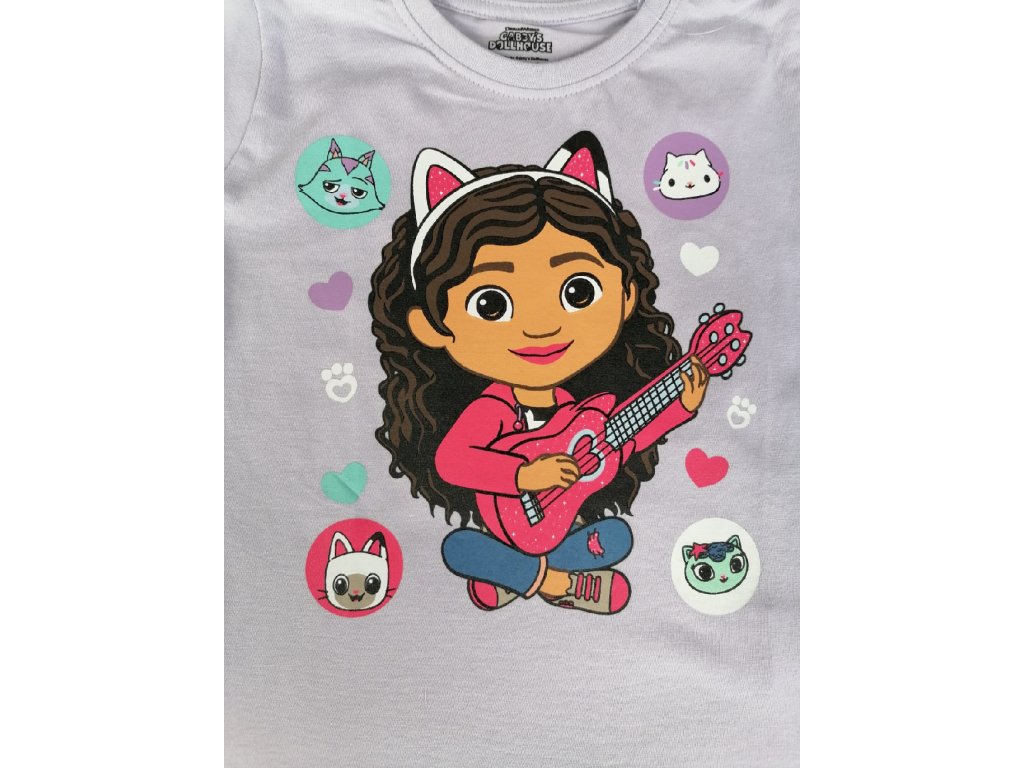 Stylové dívčí tričko s dlouhým rukávem a veselým potiskem z oblíbeného seriálu Gabby’s Dollhouse. Příjemný bavlněný materiál zajišťuje pohodlí při každodenním nošení. Krásná světle fialová barva a barevný motiv potěší všechny malé fanynky.