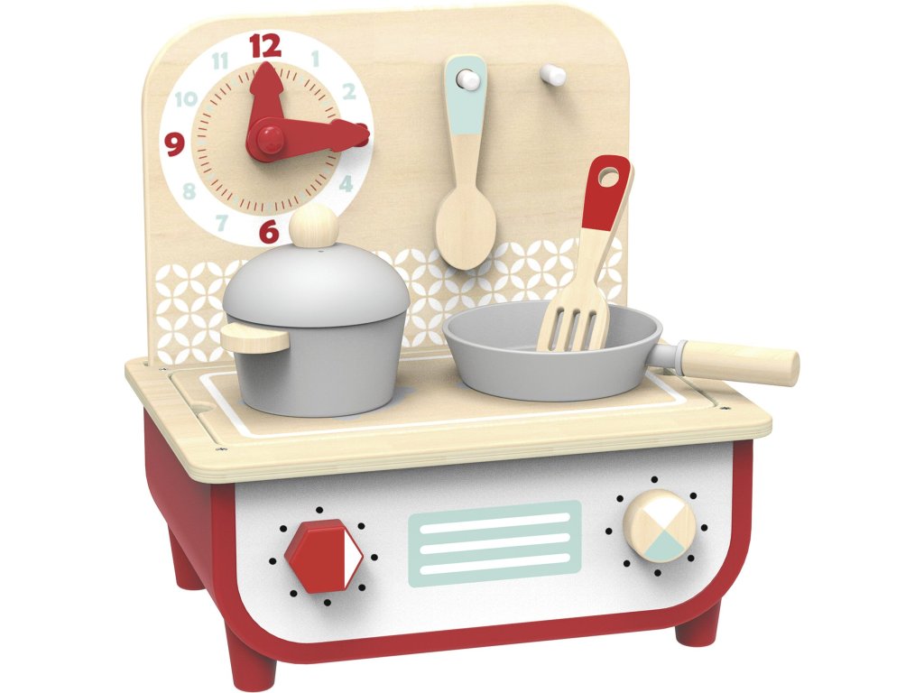 Dřevěná kuchyňka Kitchen & BBQ od značky Tooky Toy je všestranná hračkářská sada, která kombinuje klasickou kuchyňku s grilem. Ideální pro malé šéfkuchaře i pro chvíle hraní venku. Když je venku chladno nebo prší, transformuje se na kuchyňku se zadní deskou s hodinami a háčky na náčiní. Za slunečného dne stačí zadní desku odstranit a plocha se obrátí – vznikne gril.