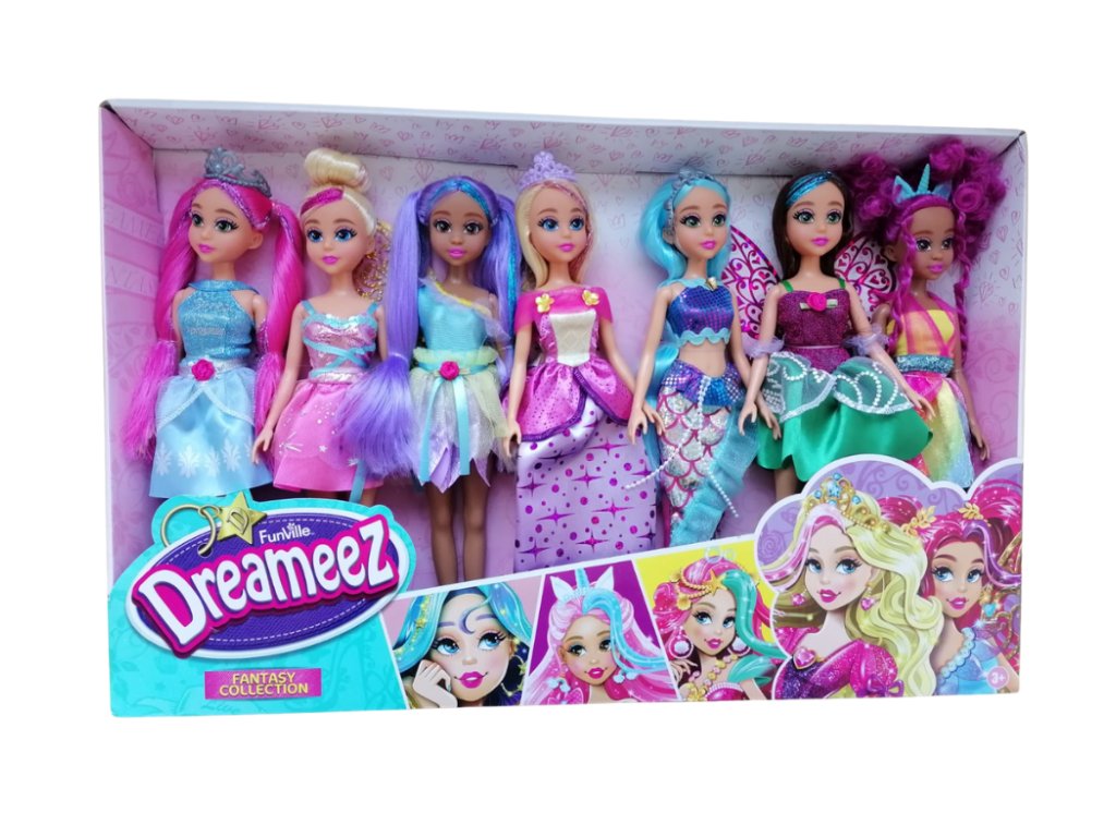 Objevte kouzelný svět Fantasie s touto nádhernou sadou 7 barevných fantasy panenek Dreameez! Každá panenka v sobě spojuje prvky víly, princezny nebo mořské panny a díky svému jedinečnému vzhledu a stylu rozvíjí dětskou představivost a kreativitu.