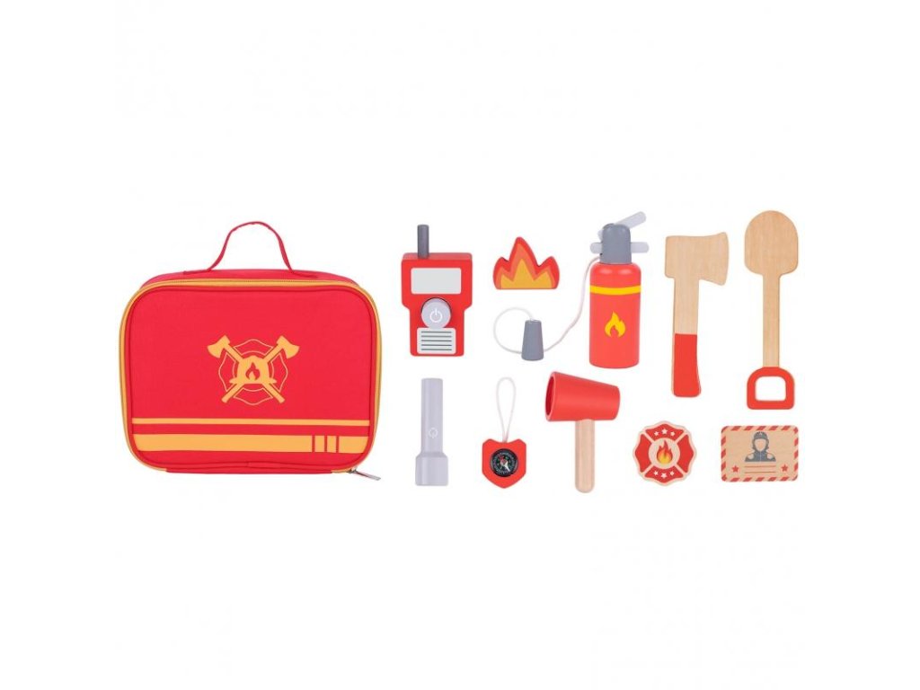 Připravte se na záchrannou akci s touto krásnou hasičskou sadou od Tooky Toy! Tato dřevěná hračka je ideální pro malé hrdiny, kteří milují dobrodružství a rádi si hrají na hasiče.