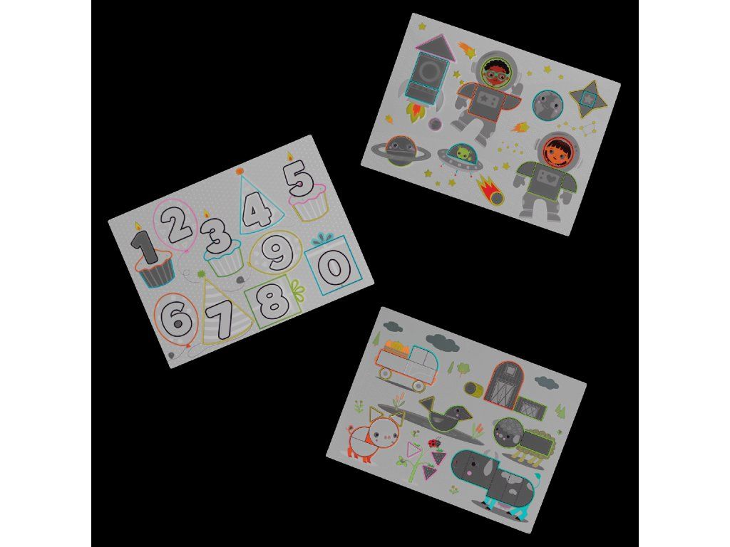 3 průhledné šablony pro opakované obkreslování a vybarvování