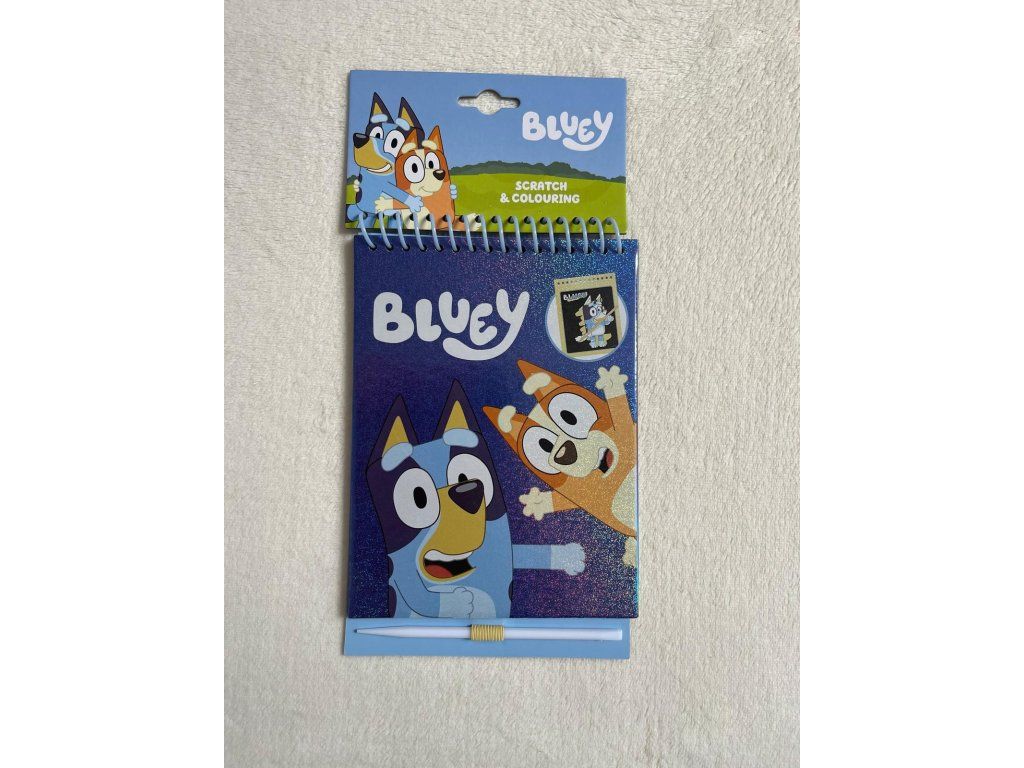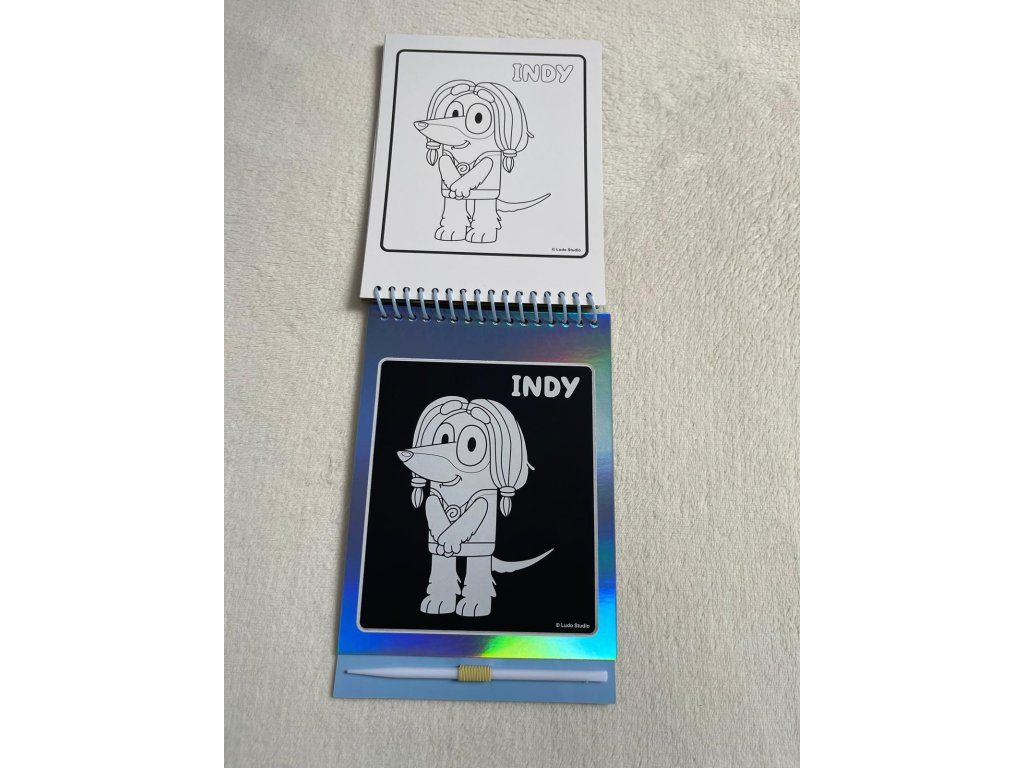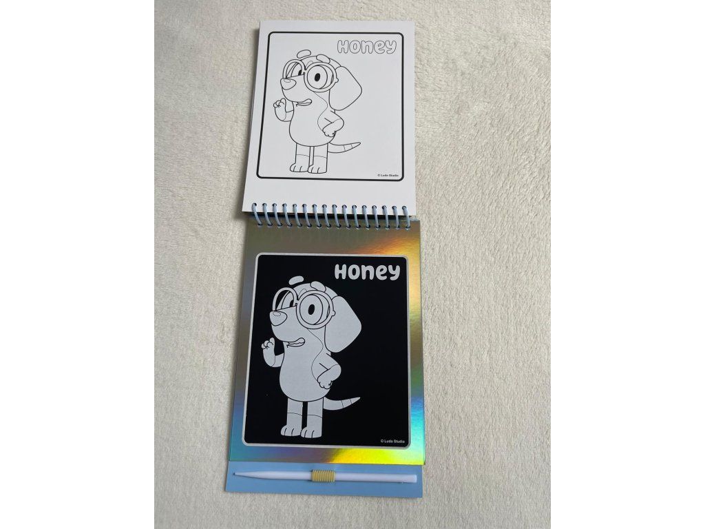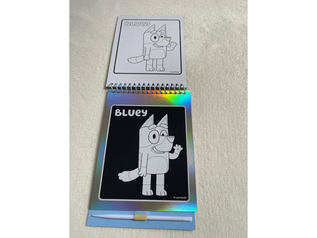 Kreativní sada na kreslení a omalovánky s motivem Bluey – stírací obrázky