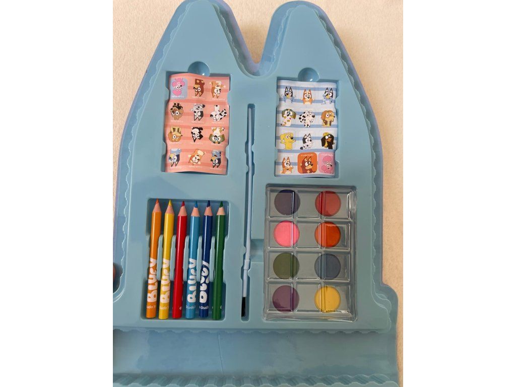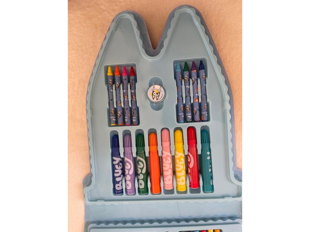Velká výtvarná sada s motivem oblíbeného dětského seriálu Bluey potěší všechny malé umělce. Děti mohou kreslit, malovat, vybarvovat i zdobit své obrázky samolepkami a vytvářet tak vlastní barevná dobrodružství s postavičkami z pohádky.