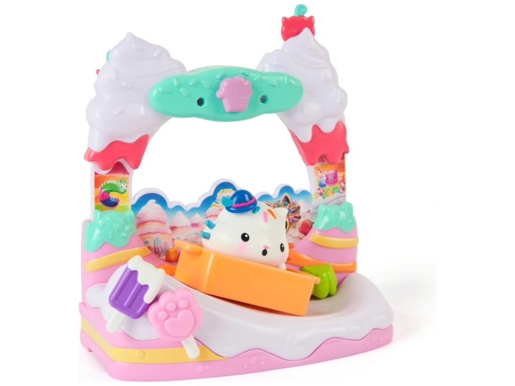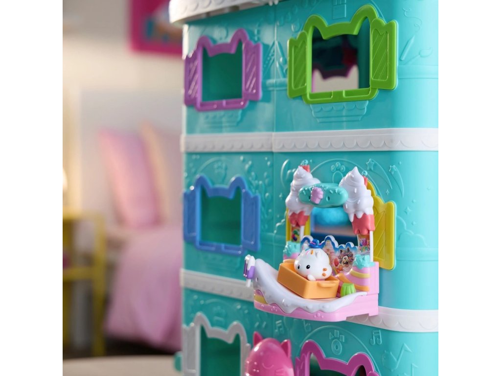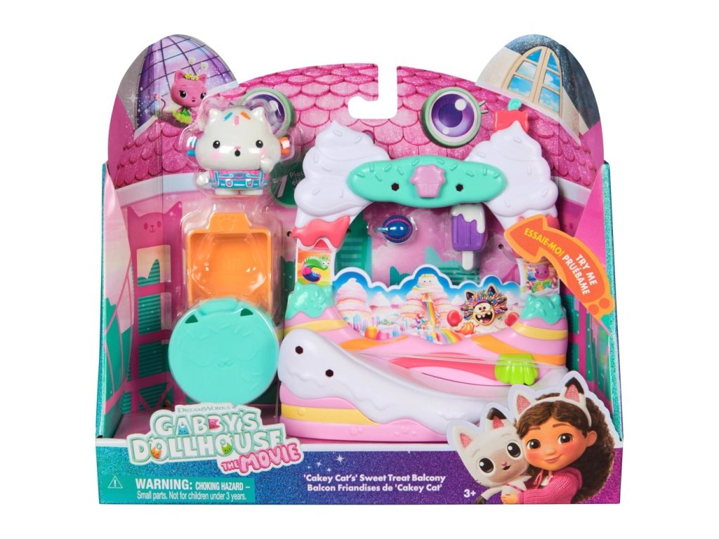 S Kuchim a jejím sladkým balkonem se stane každá hra barevnějším a zábavnějším dobrodružstvím. Balkon se jednoduše připevní na okna Gabby’s domečků (prodávají se samostatně) a poskytuje spoustu možností pro kreativní hraní – od houpacích třešní, přes skluzavku až po roztomilé doplňky.