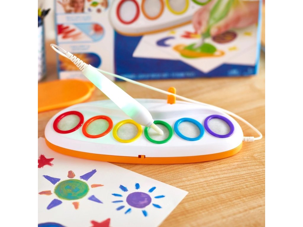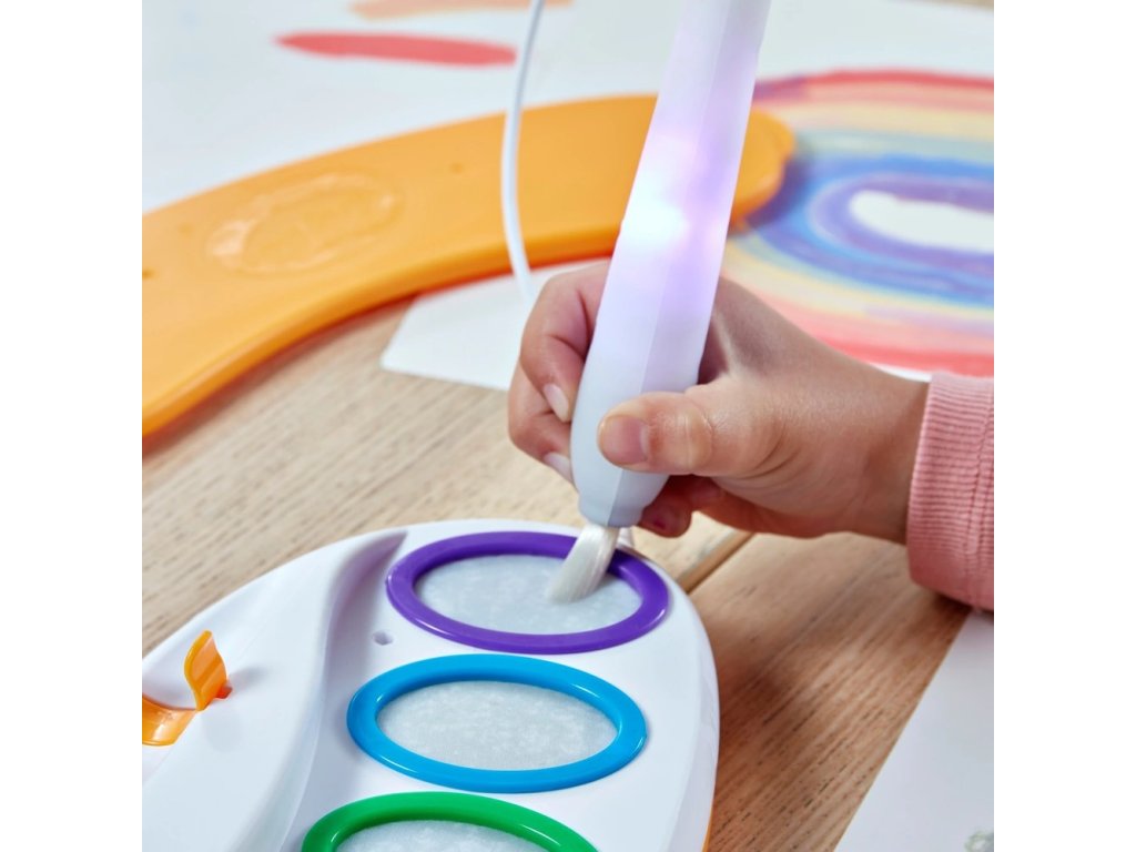 Magický štětec po vložení do jedné z barev rozsvítí odpovídající světlo, takže dítě hned ví, jakým odstínem bude kreslit. Barvy jsou samy o sobě průhledné, ale na speciálním papíru se okamžitě objeví nádherné odstíny. Set je ideální pro kreativní děti, které milují malování, ale rodiče ocení, že nevzniká žádný nepořádek.