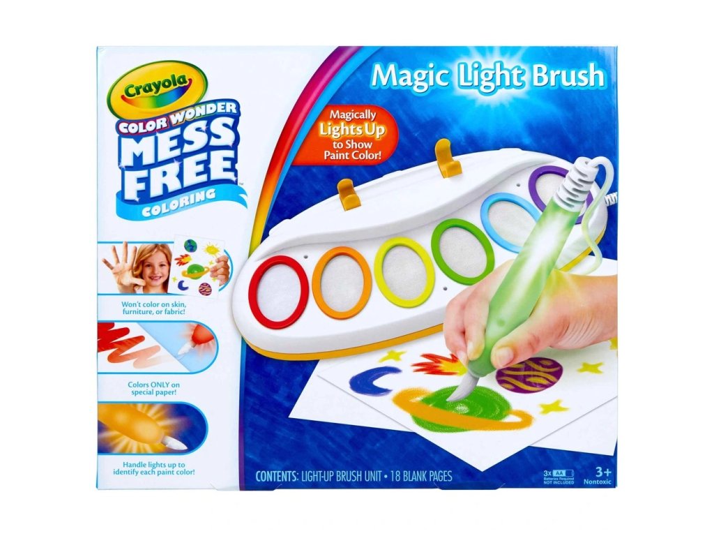 S touto kouzelnou sadou od Crayoly se děti ponoří do světa malování bez nepořádku! Color Wonder Magic Light Brush používá speciální technologii, díky které se barvy zobrazí pouze na speciálním Color Wonder papíře – nikoli na kůži, oblečení, nábytku ani zdech. Malování je tak zcela bezpečné a čisté.