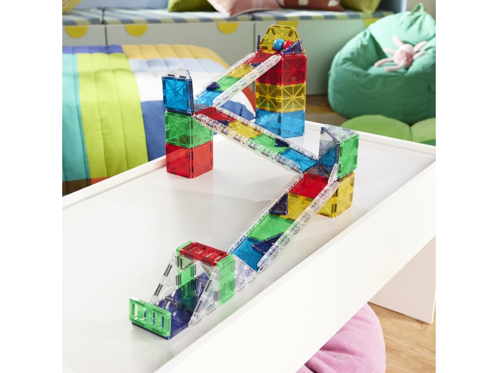 S inovativní technologií Micro Mags™ drží kolejnice pevně pohromadě, takže i ty nejdivočejší tratě jsou stabilní. Ať už děti staví jednoduchou skluzavku nebo složitý závodní okruh, čeká je hodiny tvořivé a dynamické hry.