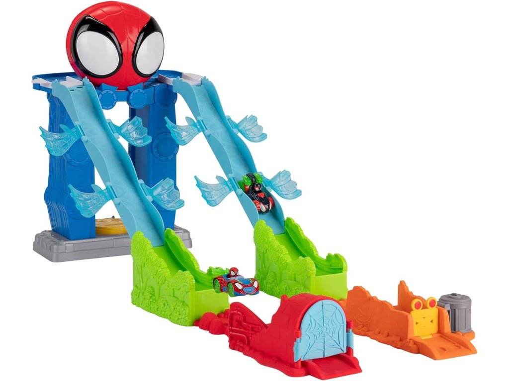 Užij si napínavé závody a akci s oblíbenými superhrdiny ze seriálu Spidey and His Amazing Friends! Tato velká herní sada nabízí dvojitou závodní dráhu s mega skokem, funkčním výtahem a akčními prvky, které zaručí hodiny zábavy.