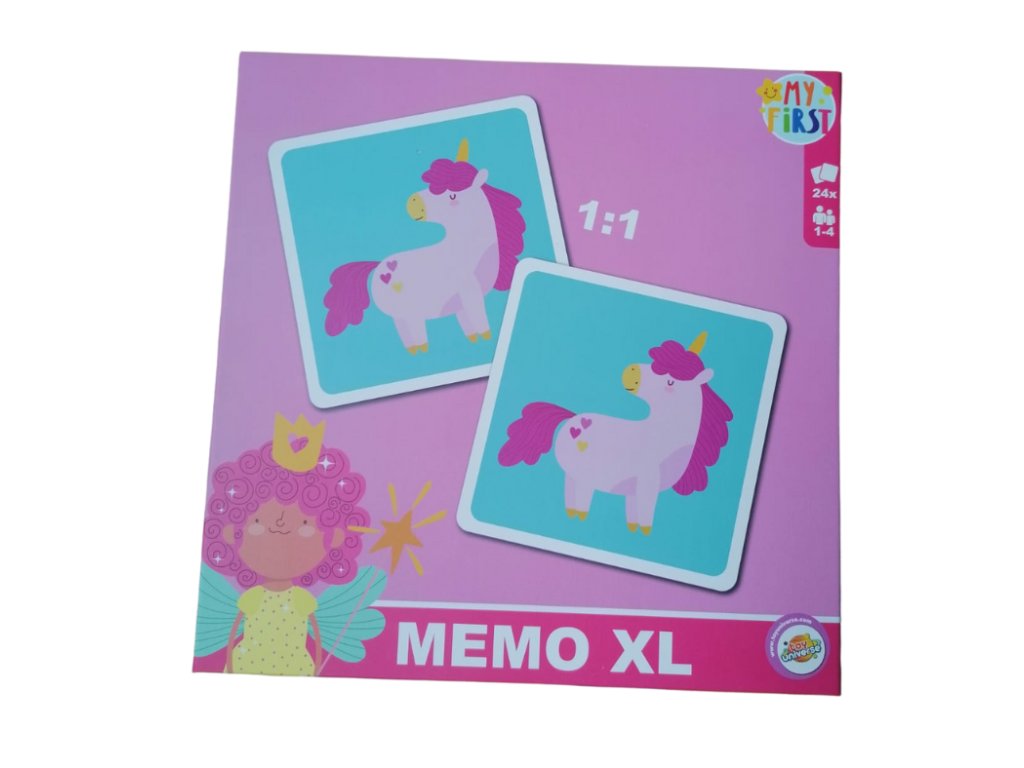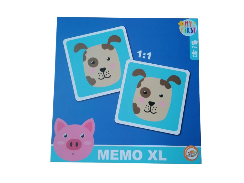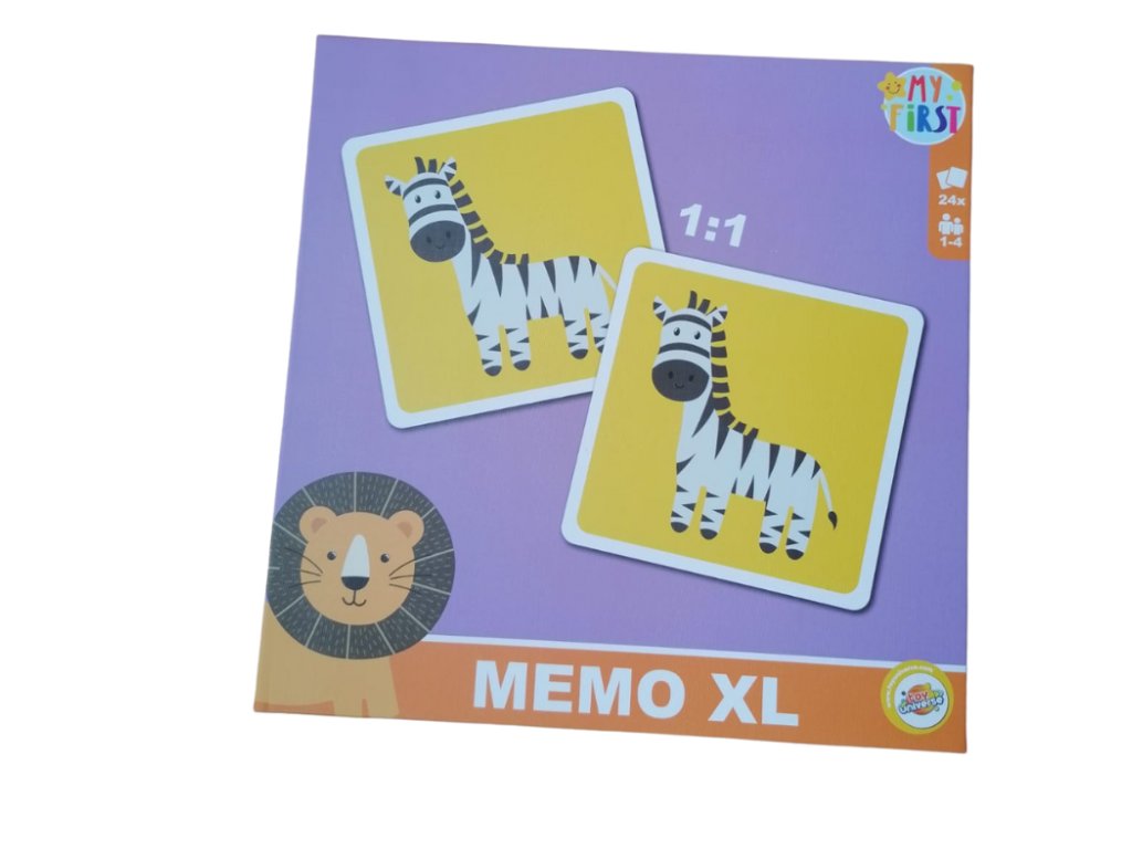 Memo XL je skvělá volba pro děti od 3 let. Díky větším rozměrům karet se s nimi snadno manipuluje, a proto je hra vhodná i pro nejmenší hráče. Děti mají za úkol najít dva stejné obrázky zvířátek – tím si trénují soustředění i krátkodobou paměť.