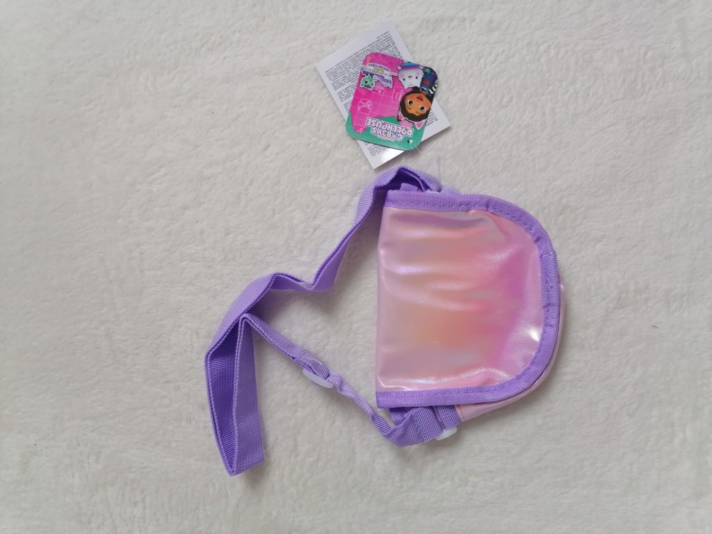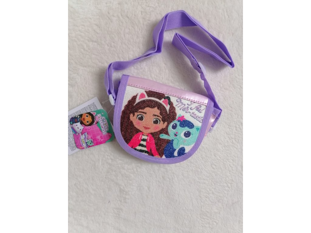 Přineste kouzlo Gabbyina kouzelného domku přímo na ramínko vaší princezny! Tato roztomilá malá crossbody / ledvinka s třpytivým motivem Gabby a její nejlepší kamarádky MerCat je dokonalý doplněk pro každou malou fanynku seriálu.
