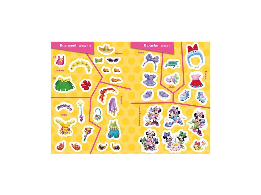 Sešit Moje první oblečkování Minnie od značky Jiří Models je samolepková knížka plná zábavy pro malé módní návrháře a milovníky Minnie Mouse. Dítě si může oblékat Minnie a její kamarády pomocí více než 120 samolepek (šaty, boty, doplňky) a tvořit vlastní stylové outfity. Veselé motivy podporují kreativitu a fantazii.