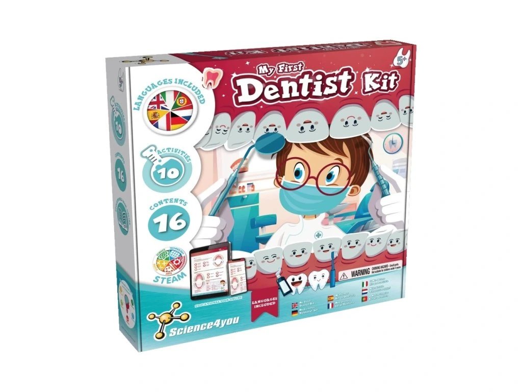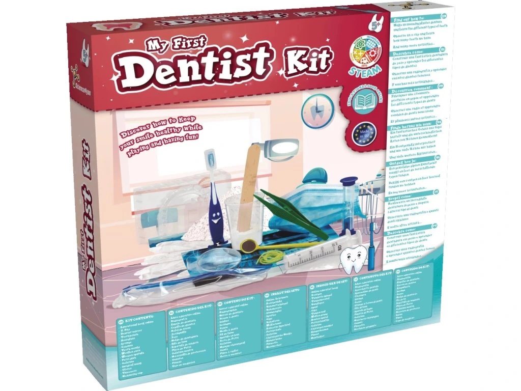 Vstupte do světa zubařského dobrodružství s My First Dentist Kit! Tento interaktivní vzdělávací set je navržen pro děti od cca 5 let a umožňuje hravou formou objevovat, jak funguje ústní hygiena a péče o zuby.