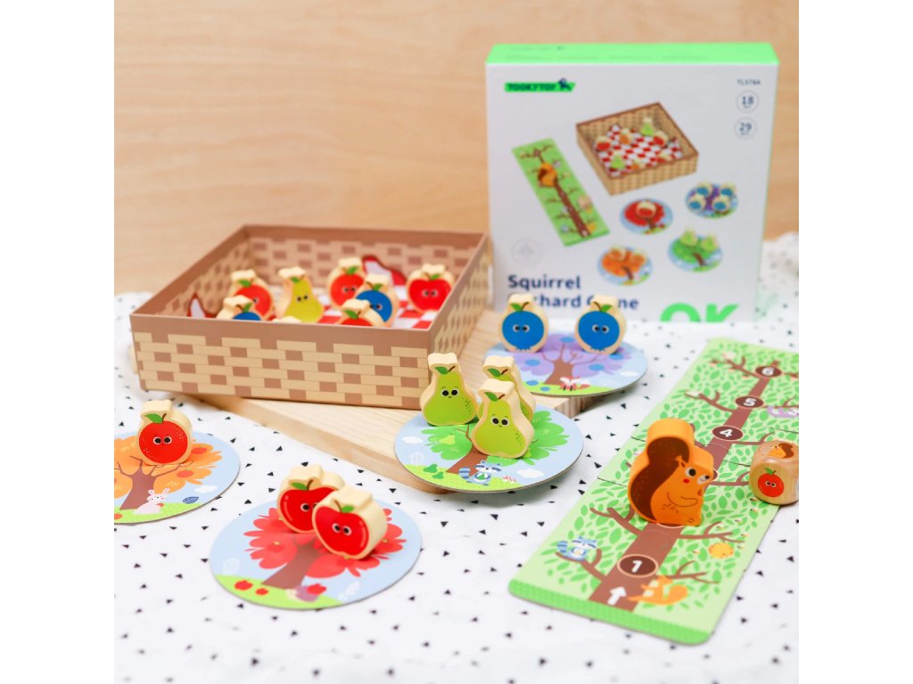 Zábavná a barevná dřevěná hra pro nejmenší! V této hře od Tooky Toy si děti zahrají na veverky, které sbírají ovoce ze stromů a třídí ho podle druhu nebo barvy. Edukativní hra rozvíjí logické myšlení, jemnou motoriku i trpělivost – a to zábavnou formou, která děti opravdu baví!