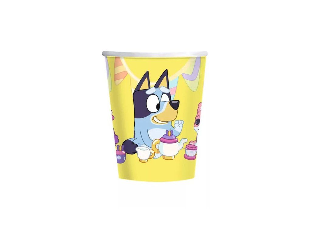 Praktické papírové kelímky s veselým motivem oblíbeného seriálu Bluey jsou ideální na dětské oslavy, párty nebo každodenní použití.