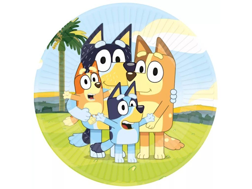 Stylové papírové talíře s motivem oblíbeného seriálu Bluey jsou ideální na dětské oslavy, narozeniny i tematické párty.