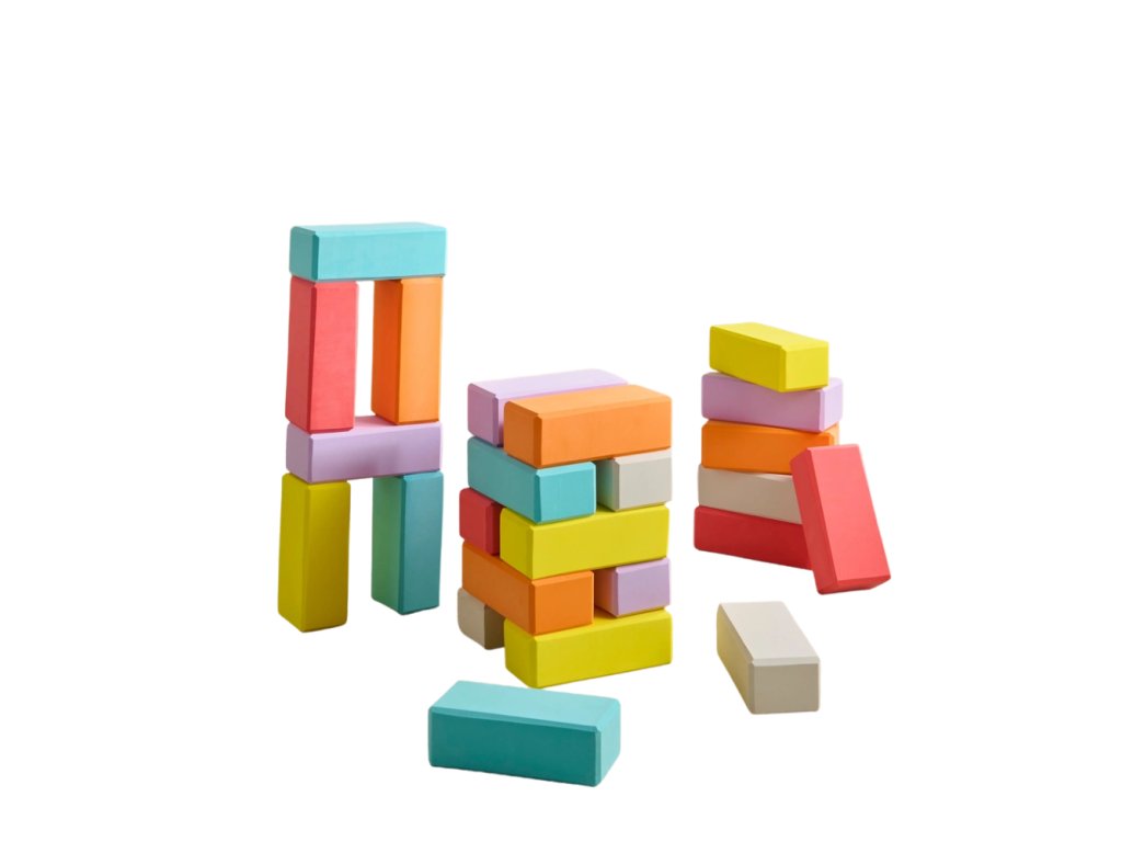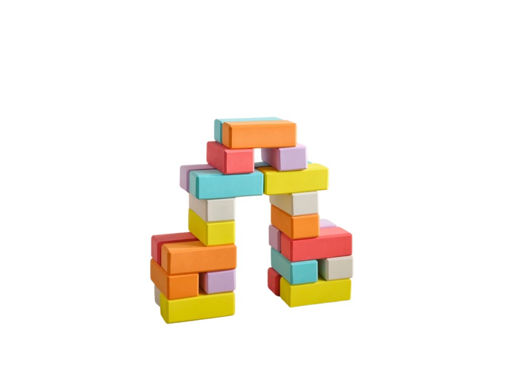Bloky jsou vyrobeny z jemného, ale odolného pěnového materiálu s hladkými stranami bez rohů. Díky tomu jsou vhodné již pro děti od 3 let a minimalizují riziko poranění při hře.