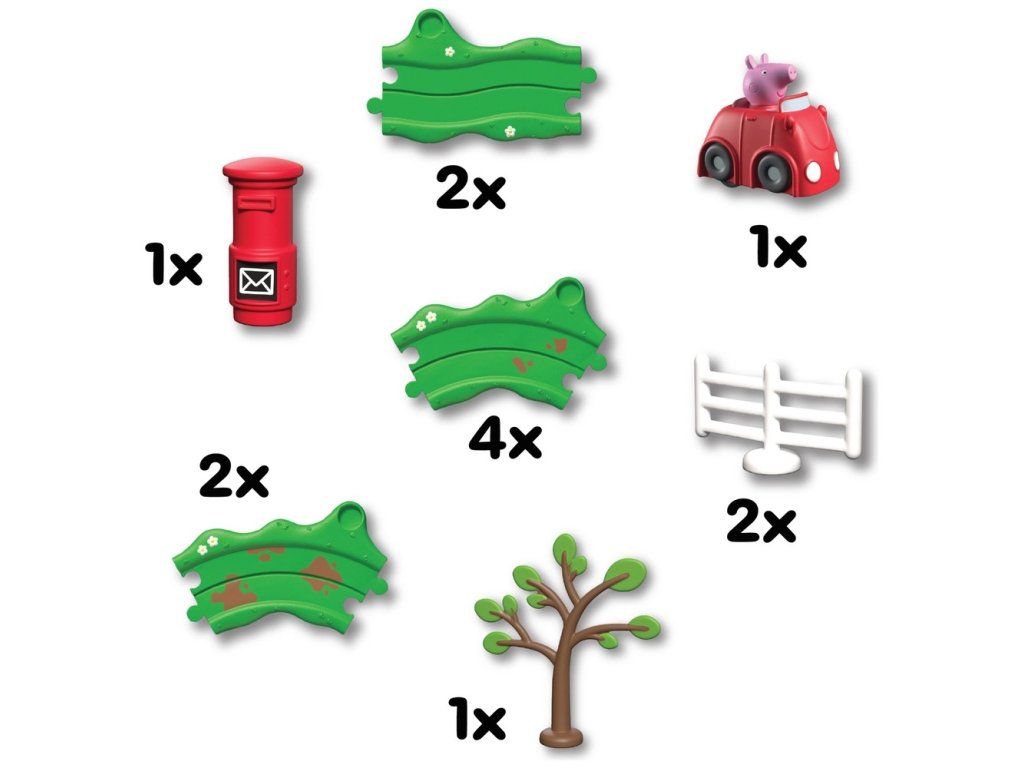 1× malé červené autíčko Peppy (vyžaduje 1× AAA baterii, není součástí)