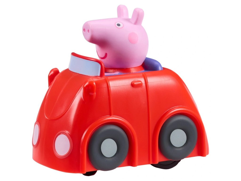 ✔ Malé červené autíčko s figurkou Peppy – stiskni hlavu a auto vyrazí