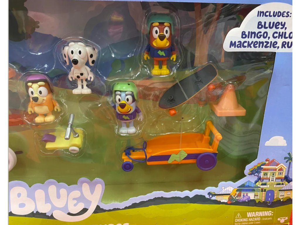 Figurky postaviček ze seriálu – Bluey, Bingo, Chloe, Mackenzie a Rusty