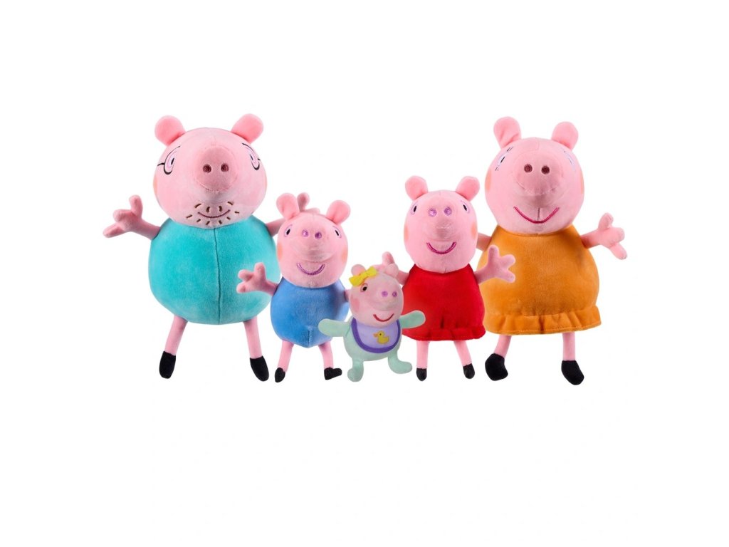 Sada plyšových hraček zahrnuje maminku a tatínka Pig, Peppu, George i nové miminko Evie. Všechny figurky jsou vyrobeny ze super měkkého plyše v klasickém designu Peppa Pig. Upozornění: barvy a design se mohou mírně lišit.