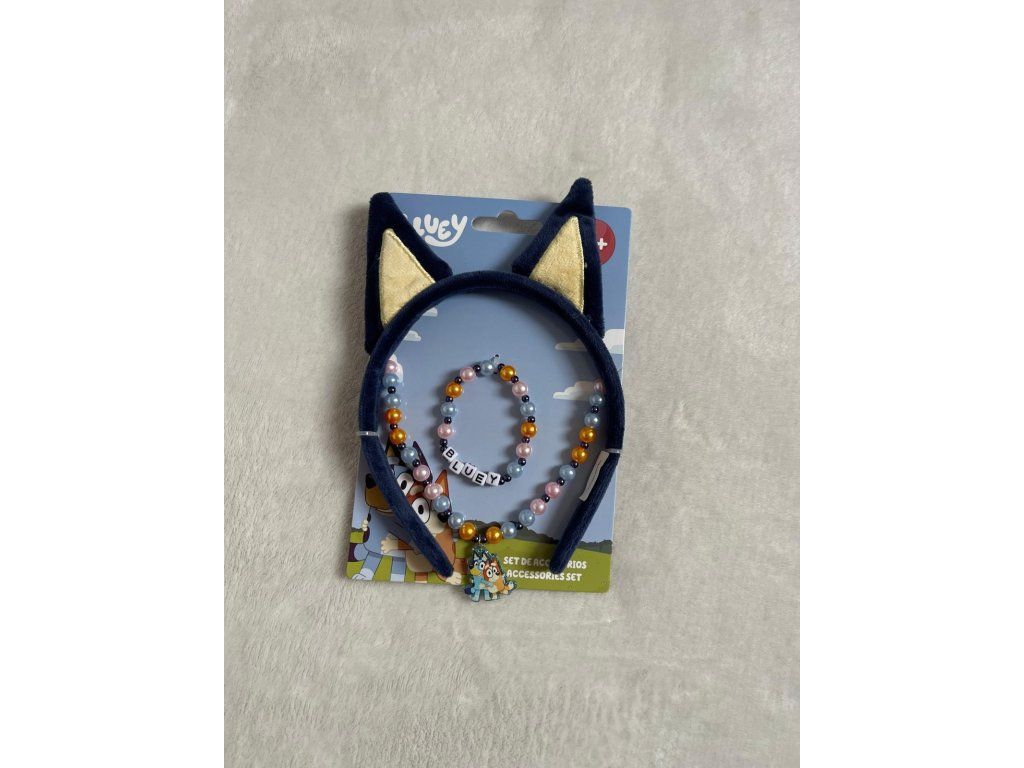 Kouzelná dětská sada doplňků s motivem oblíbeného seriálu Bluey potěší každou malou fanoušci Bluey. Sada obsahuje čelenku s oušky a ladící šperky v modrém provedení, díky kterým si děti mohou vytvořit hravý a stylový outfit inspirovaný svou oblíbenou hrdinkou.