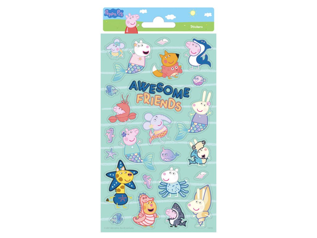 Balení obsahuje 1 samolepkovou kartu o velikosti cca 20 × 10,2 cm, na které najdete různé motivy Peppy a jejích kamarádů. Děti mohou samolepky používat na zdobení sešitů, deníčků, přáníček nebo jako malou odměnu.