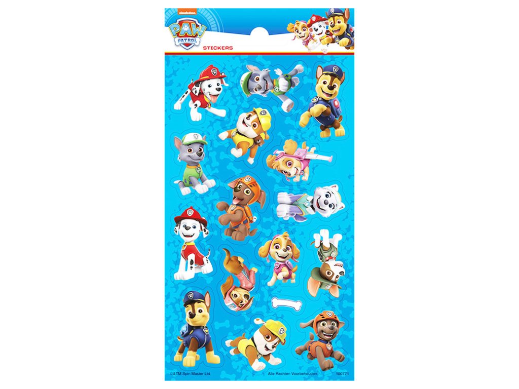 Balení obsahuje 1 samolepkovou kartu o velikosti cca 20 × 10,2 cm, na které najdete různé motivy oblíbených štěňat z Paw Patrol. Děti mohou samolepky používat na zdobení sešitů, deníčků, přáníček nebo jako malou odměnu.
