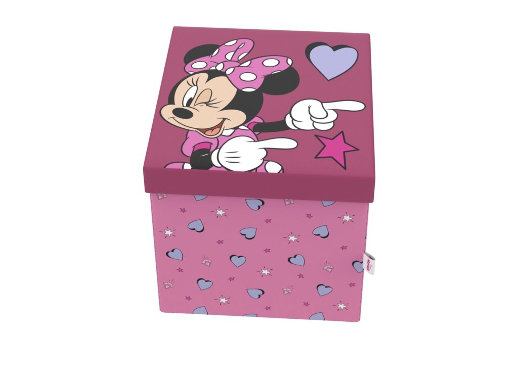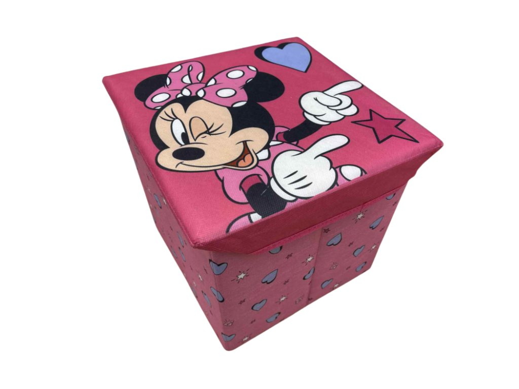 Praktický sedací a úložný box s motivem oblíbené postavičky Minnie je ideální pomocník do dětského pokoje, herny nebo obývacího pokoje. Díky pevnému víku poslouží nejen jako úložný prostor na hračky, knihy či drobnosti, ale také jako pohodlná stolička.