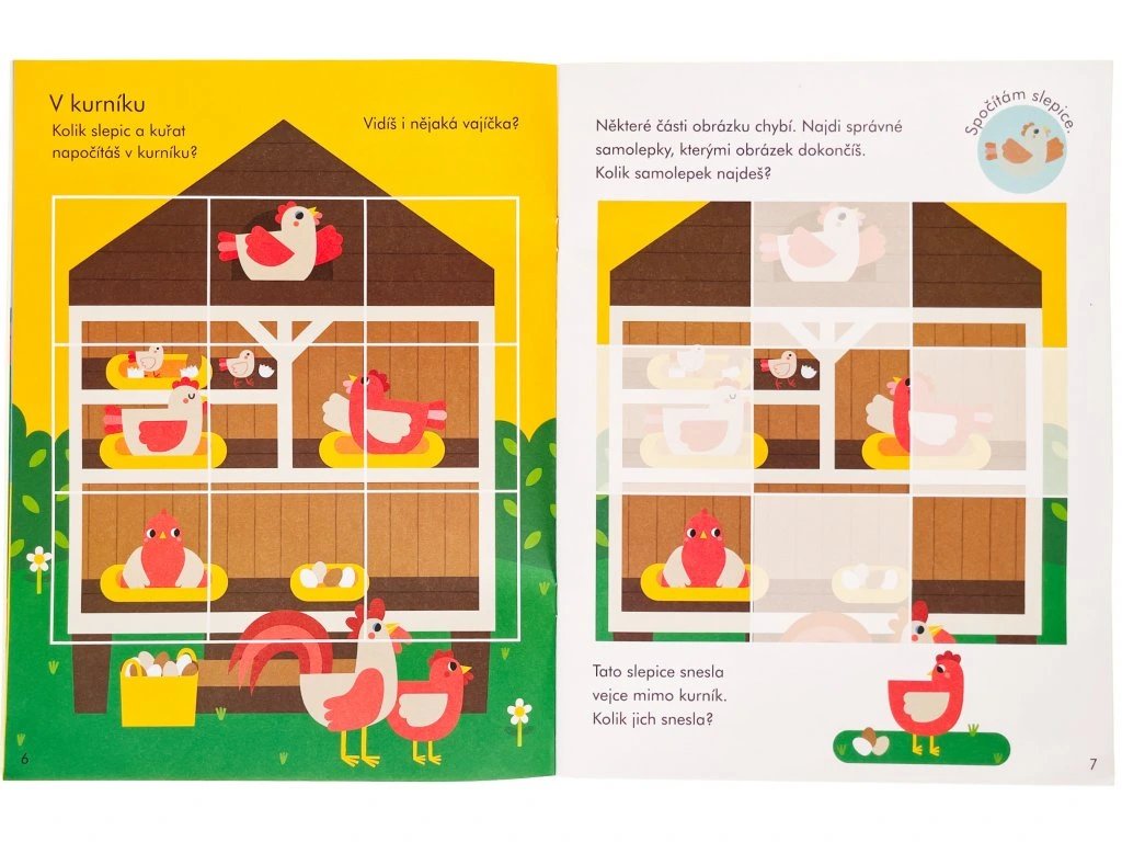 Na farmě je vždy co objevovat! Děti doplní samolepky koníka, ovečky, kravičky i traktoru a vytvoří tak veselé farmářské scény. -