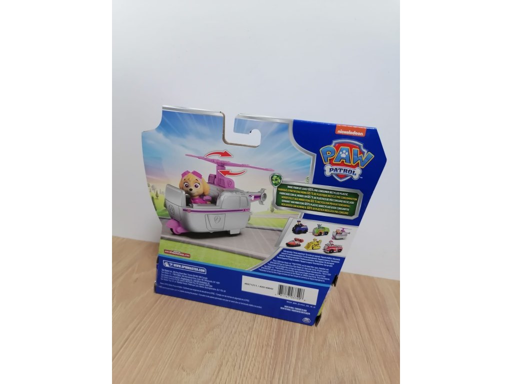 Skye má na sobě svou typickou růžovou uniformu, štěněcí batoh a pilotní brýle. Její vrtulník je vybaven pohyblivými listy rotoru a funkčními koly, takže může snadno přistávat, vzlétat i rychle vyrazit na pomoc komukoli v nouzi.