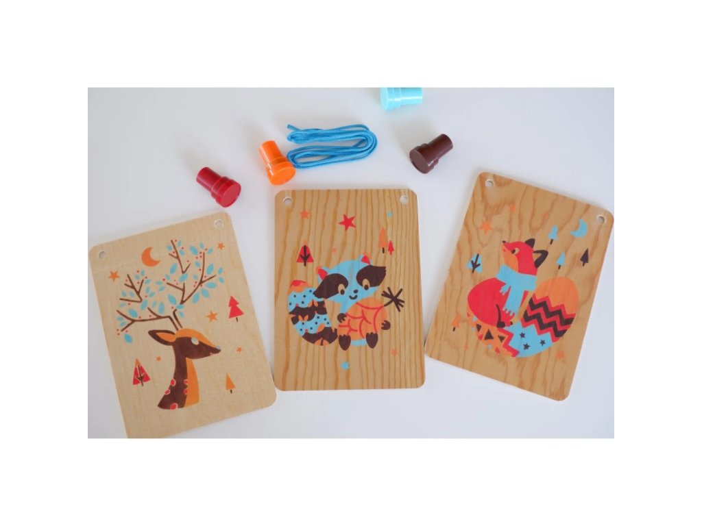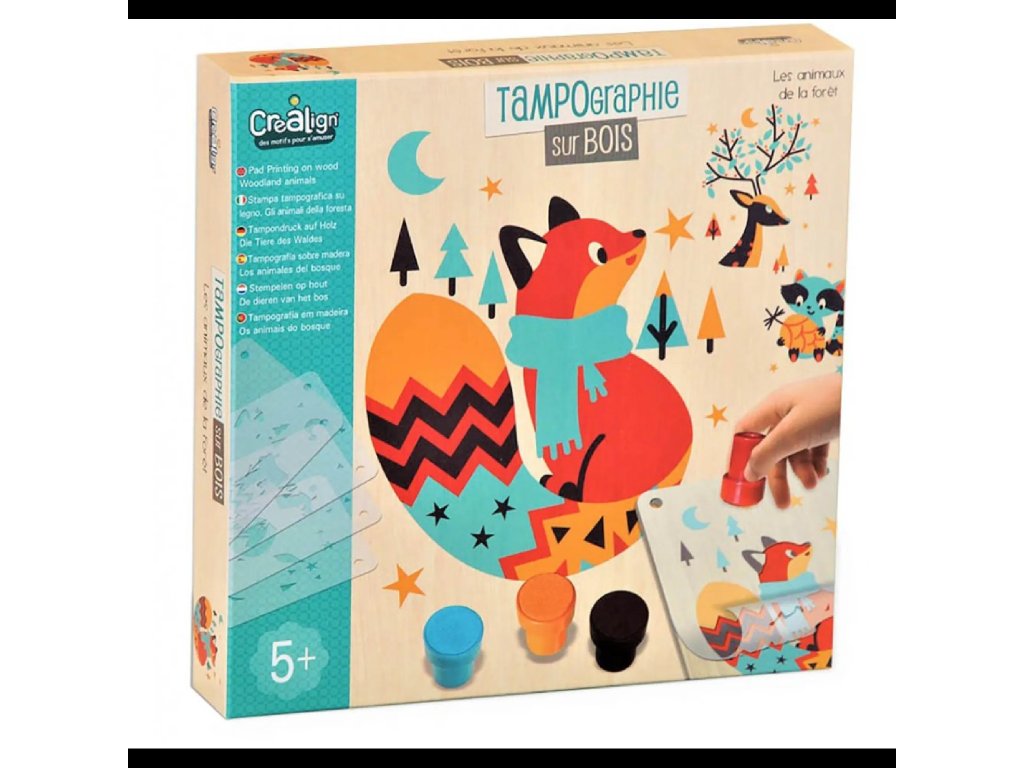 Objevte kouzlo tvoření s originální sadou tampografie na dřevo od značky Crealign! Děti si s pomocí speciálních razítek, barev a šablon vytvoří nádherné obrázky s motivy roztomilých lesních zvířátek. Stačí jen razítko, barva a trocha fantazie – a lištička, srnka nebo mýval ožívají na dřevěném podkladu.