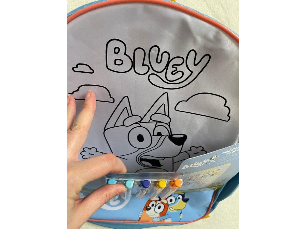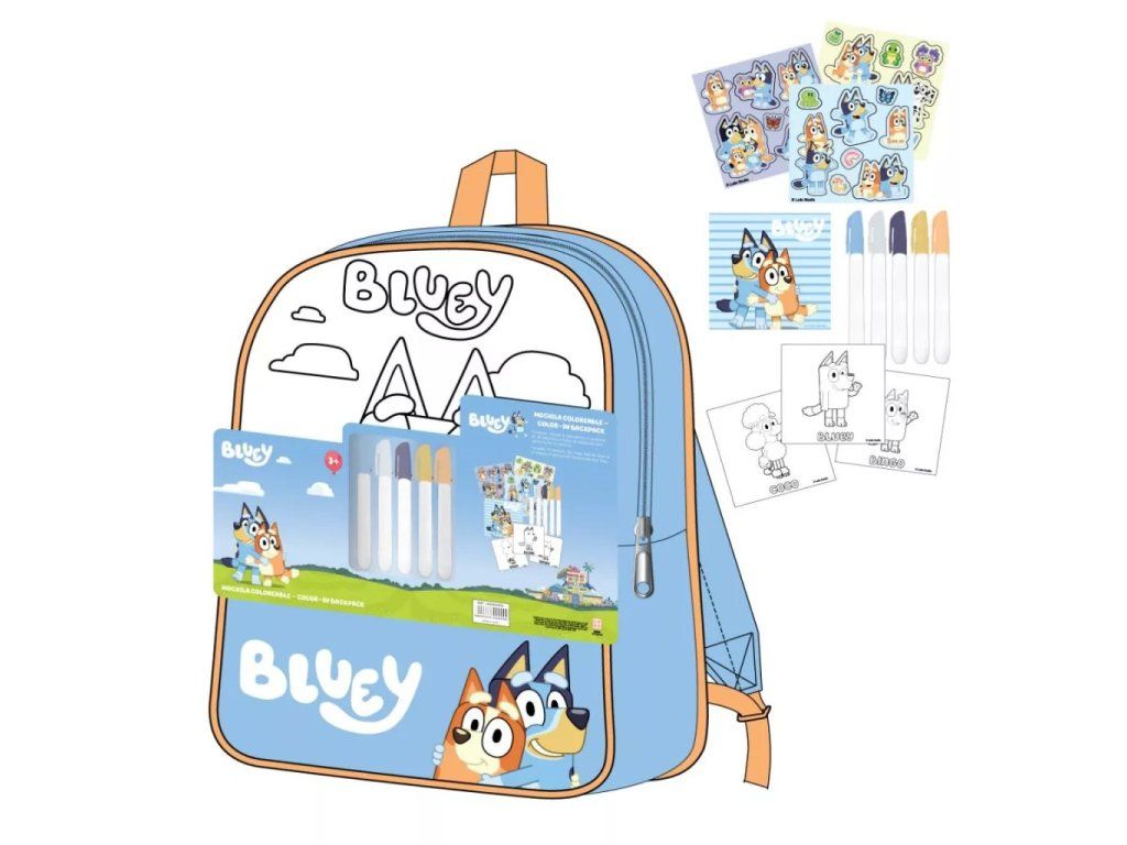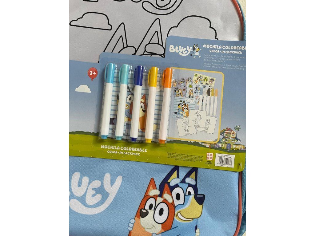 Potěšte malé fanoušky oblíbeného seriálu Bluey originálním vybarvitelným batohem! Tento stylový modrý batoh nabízí dětem nejen praktický prostor na věci, ale také zábavnou kreativní aktivitu. Přední část batohu je potištěna obrázky, které si děti mohou samy vybarvit přiloženými fixy a vytvořit si tak vlastní jedinečný design.